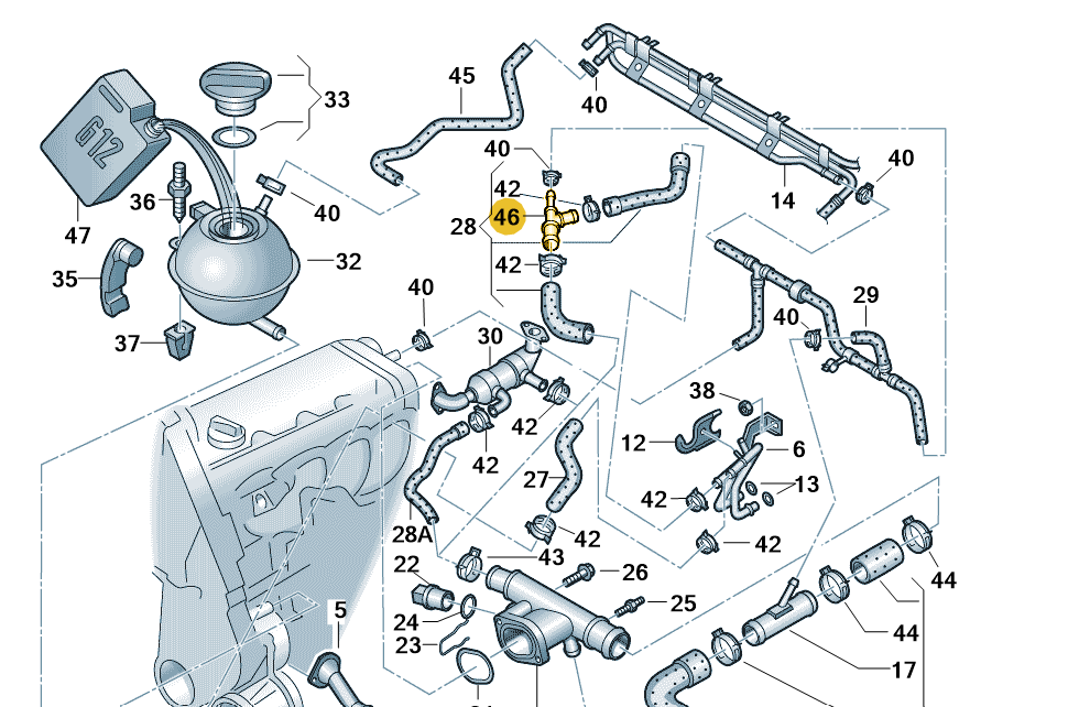 Oryginalny króciec układu chłodzenia wodny 6Q0121087B